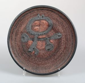 Jaap Dommisse COBRA-style ceramic plate on red fond